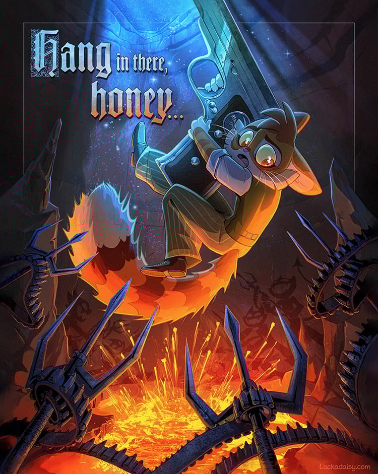 "Hang in there, honey." Some words of inspiration for Lackadaisy's resident triggerman, Freckle, who seems to be struggling with some demons. Aren't we all?